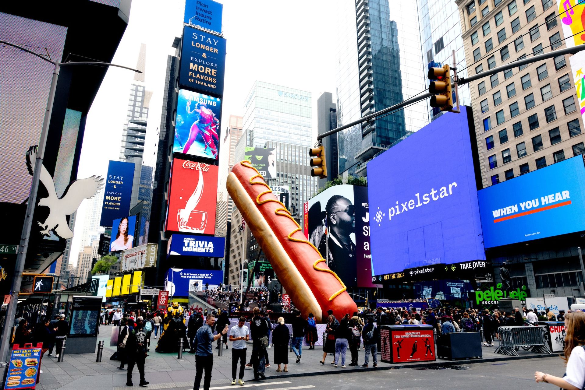 Organized by the Times Square Center for the Arts, this spectacular event is accompanied by a series of public programs. These include a wrestling match with professional and drag wrestlers (May 3), a canine beauty pageant to determine the “Hottest Dog” (May 10), and a qualifier for Nathan’s International Famous Hot Dog Eating Contest (May 17) and a hot dog workshop with writers, activists and street vendor representatives (June 9).Additionally, to demonstrate the hot dog’s bipartisan appeal, the artists encouraged the public to vote Choose their favorite condiment and the winner will be announced during the closing ceremony (June 13).