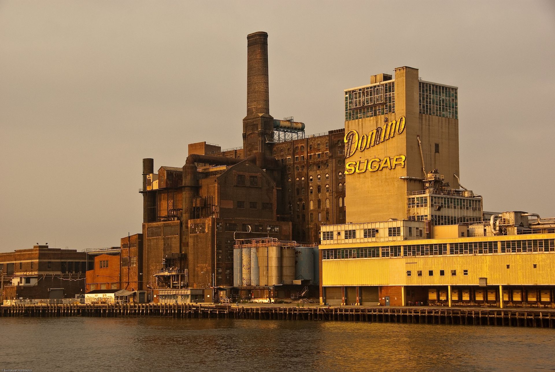 In 2014, ten years after the sugarhouse closed, the Overton sign (the third “domino” sign to grace the building) was removed and the letters separated. As Gavriel said: “The sign hung on site because it was weatherproof and designed for the outdoors.” Although an exact replica of the sign was eventually made on top of the completely renovated building items, but the originals remained in many nearby locations for years, too large to fit into storage containers—even in their dismantled state. (“It can live outside, it’s very well built,” Overton said.)