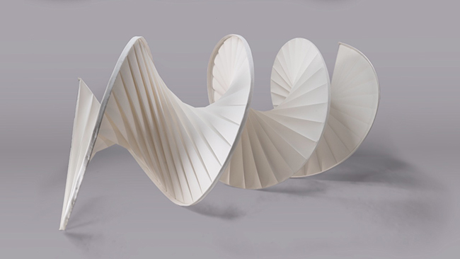 Her choice of watercolor paper adds a quiet vulnerability to the piece. The texture absorbs light differently from metal or digital media. It holds traces of her hand, of time, and of touch. The imperfections in the folds—the soft edges, the small asymmetries—become part of its voice. The work’s physical fragility is what gives it strength. While DNA may define existence on a molecular level, Kyong’s paper structure expresses the human impulse to make meaning from it. It’s not just a symbol of life, but an act of care—something shaped slowly, deliberately, by hand.