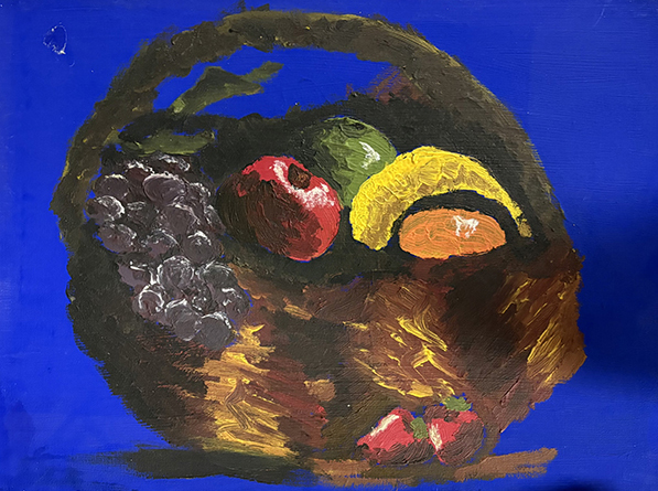 “Still life – still love” appears, at first, to belong to a long tradition. The front presents a basket of fruit. It feels calm, composed, almost timeless. The arrangement suggests care and attention, a quiet moment held in place. Fruit, often associated with abundance and life, sits as a symbol of something complete.