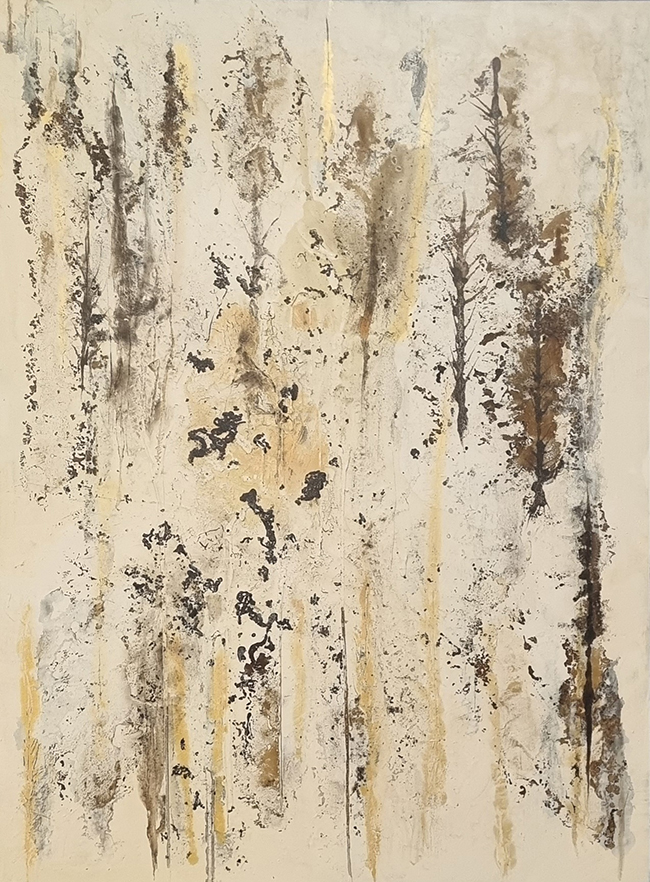 The SuperNova art series, and particularly the Regeneration Diptych, stands as a meditation on transformation—both witnessed and imagined. The work originates from a moment of unexpected confrontation while crossing the snow-covered Alps. Amid the stillness and white expanse, Barr encountered a forest fire burning through the cold landscape. Trees stood aflame against the snow, appearing less like objects consumed by destruction and more like living torches caught in a state of transition. This striking contradiction—fire within snow—became the emotional and conceptual spark for the series.