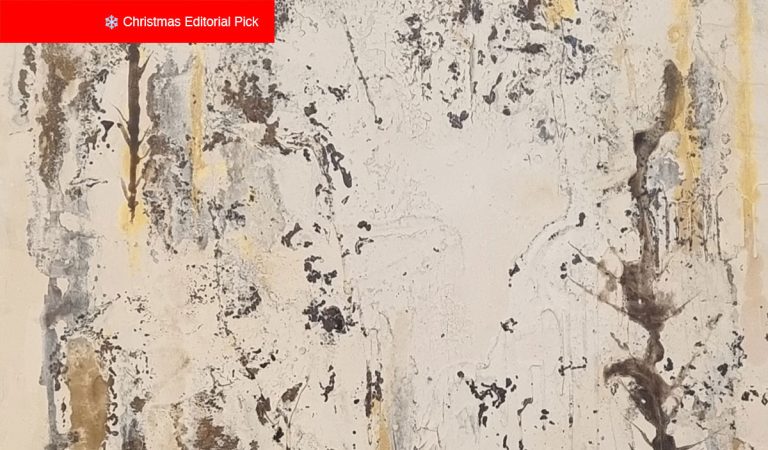 Visually, the work navigates between abstraction and surrealism, leaning into texture as a carrier of meaning. Barr’s surfaces feel visceral, layered, and worked—inviting the viewer to sense rather than decode. Earthy browns, deep blacks, muted whites, and ash-like tones dominate the palette. These restrained colors suggest soil, smoke, bone, and stone—materials that feel ancient, worn, and enduring. Nothing appears decorative or polished; instead, each mark carries weight, as if time itself has pressed into the surface.