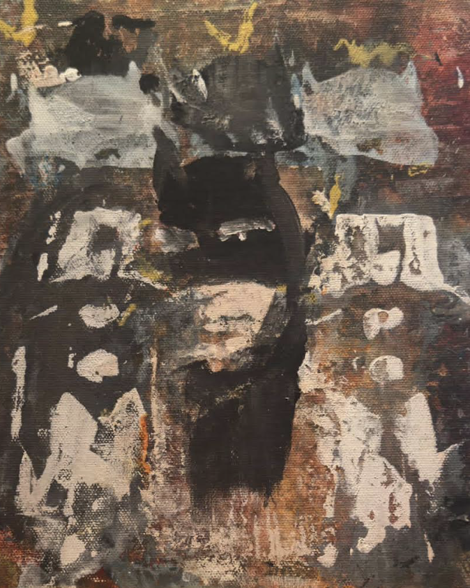 He paints the way he makes music: by ear, by feel. If something looks too controlled, he disrupts it. If something feels too safe, he destroys it and rebuilds it. That tension gives the work its pulse.